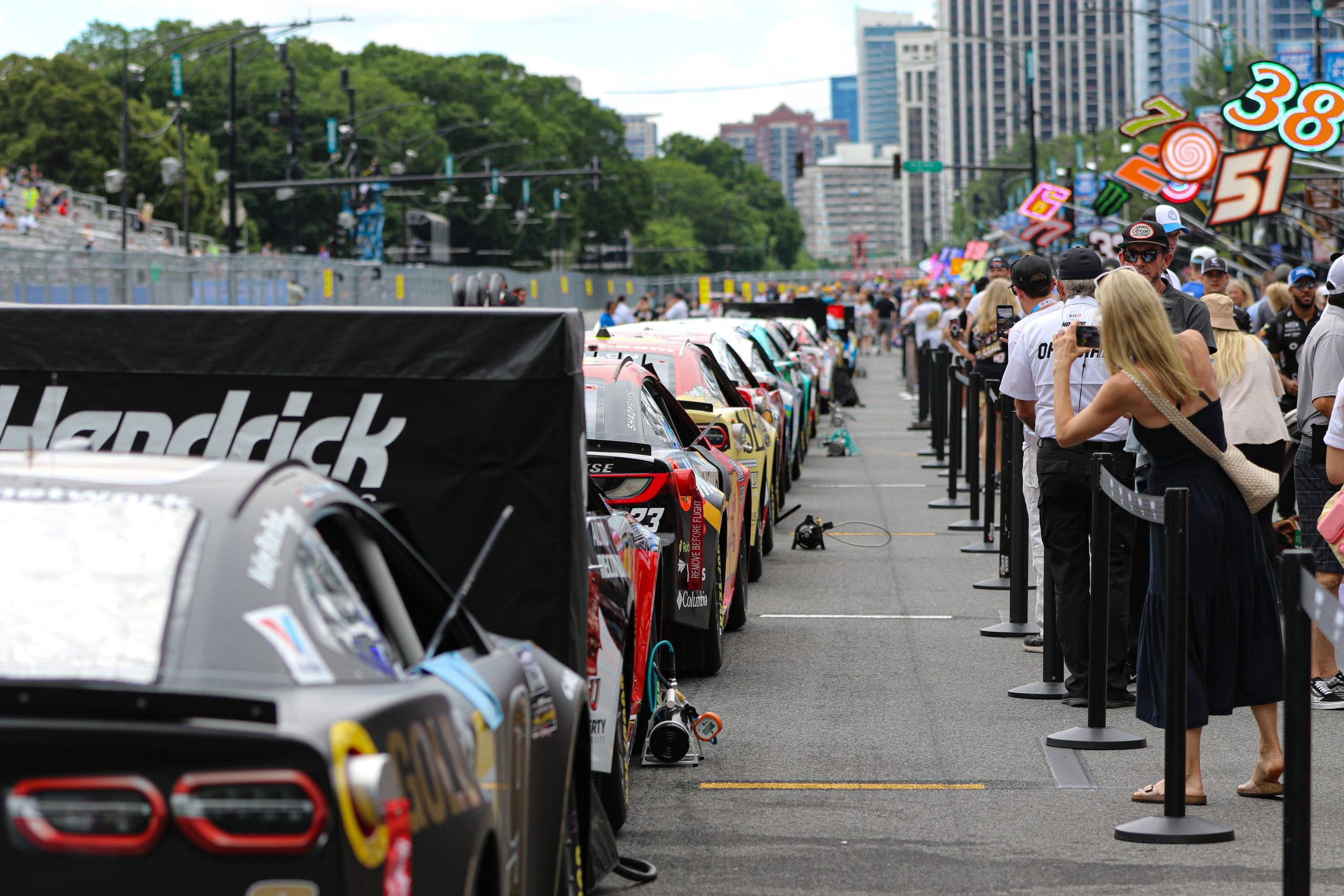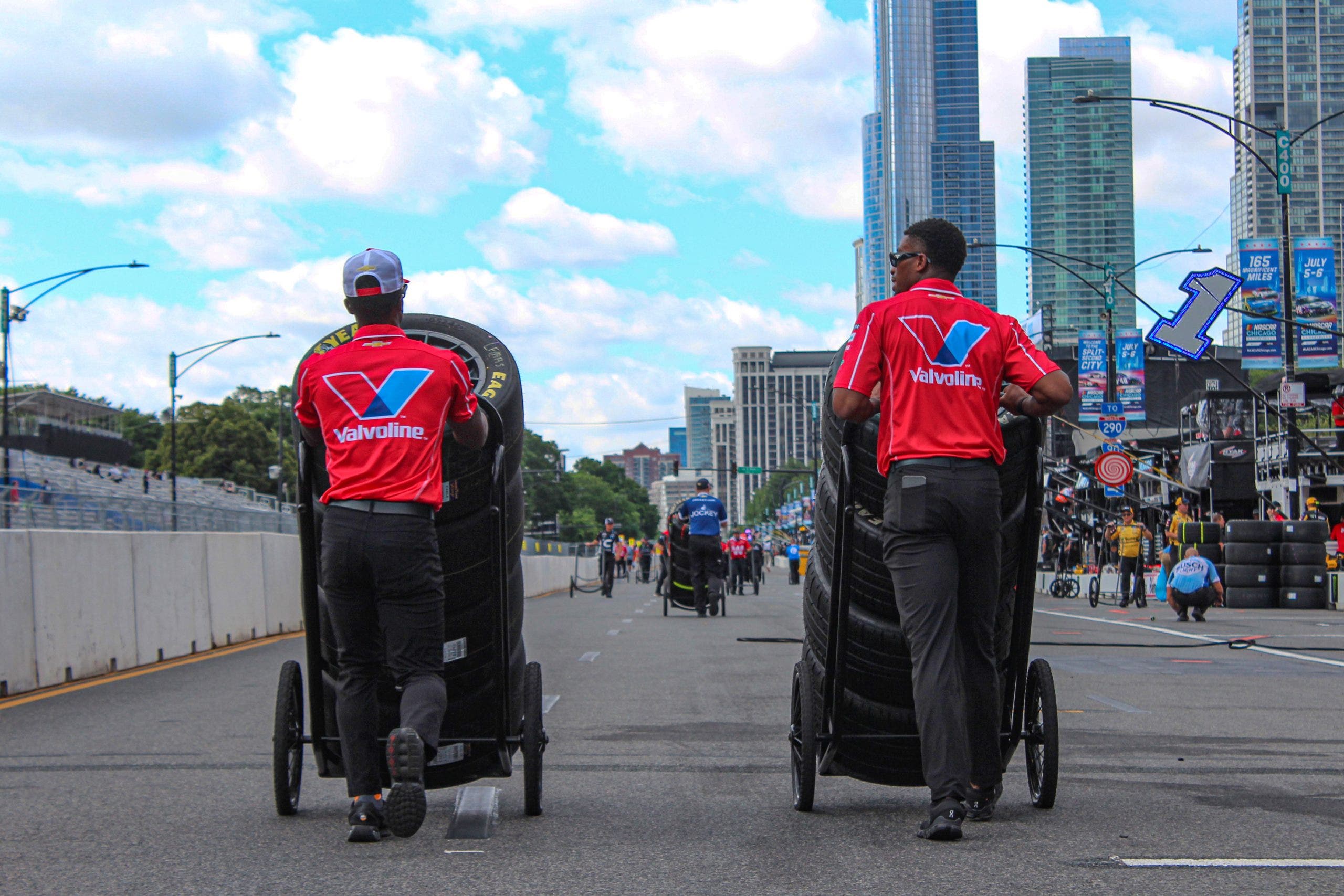 La tercera fila del clima adverso fue en la carrera de Chicago, y los neumáticos de lluvia entraron en la carretera de boxes temprano el domingo. Neumáticos a la izquierda, resbaladizas a la izquierda, para condiciones secas, neumáticos a la derecha. (Foto Ed McGreger/Fox Sports)