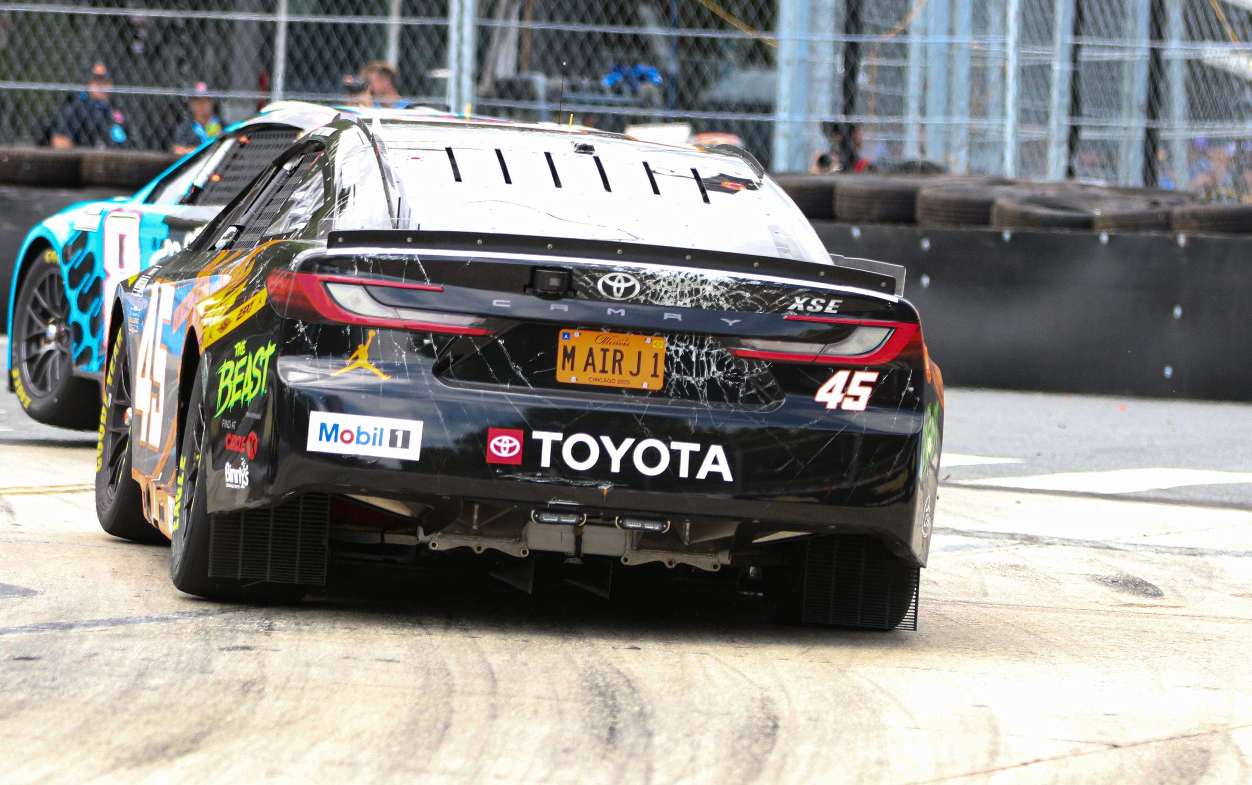 ¡Habla sobre la placa de tocador! La placa de Illinois se refería a Michael Jordan, copropietario del equipo 23XI en el auto de Tyler Reddy. Reddy llegó tarde y terminó tercero. (Foto Ed McGreger/Fox Sports)