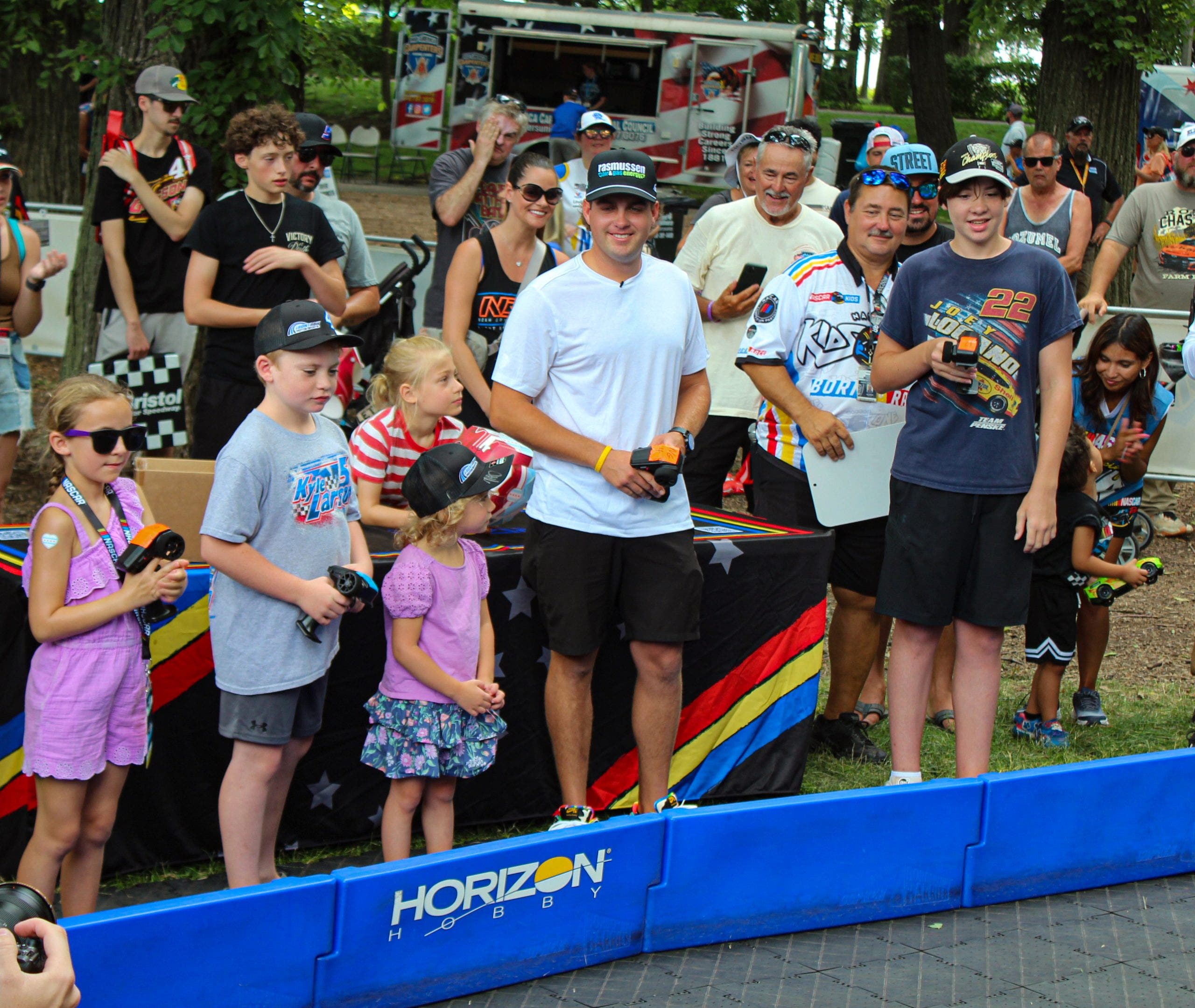 Nah Gragson corrió autos con concentración a distancia contra jóvenes fanáticos en la zona de Naskar Kids. (Foto Ed McGreger/Fox Sports)