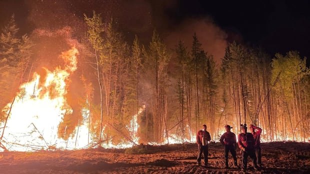 Brook Kindel, un Brook Kindel embarazado de 35 semanas, fue al trabajo prematuro del estrés después de que el pueblo de Saskatchewan, cerca de la frontera de Manitoba, fue evacuado de la playa de Denare. Los funcionarios de la aldea han confirmado que el incendio de lobo ha destruido la parte sur de la sociedad.