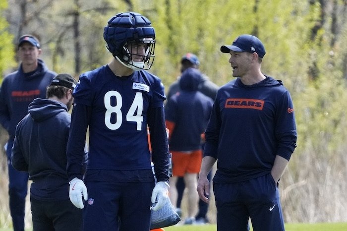 Pierce de Chicago El entrenador del primer año tendrá un nuevo aspecto bajo Ben Johnson. Un ala cerrada de posición para atrapar. ¿El campo de entrenamiento ganará la guerra para convertirse en el ala cerrada inicial de la portería Kmet o Coleston Loveland Pierce?"Twitter-beet">>>>>