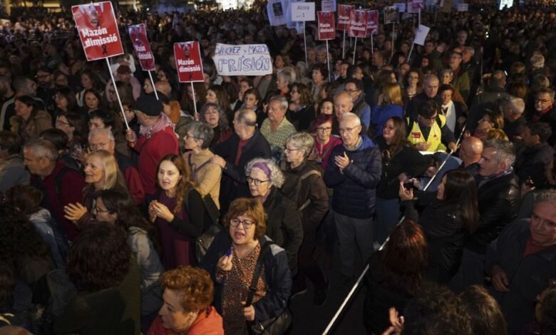 Miles de personas (5,000Según las declaraciones de la delegación del gobierno en la comunidad de Valinsia), se mudaron a las calles de Valencia el domingo para exigir la renuncia del Presidente de la Sociedad, Valenciano, Carlos Mazon y el Director Ejecutivo Regional, frente a la falta de trabajo durante las inundaciones devastadoras que causaron cientos de muertos.