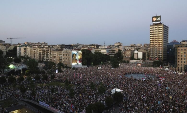 Miles de personas evitan el domingo las calles de Serbia, lo que los perturbó por el arresto de los antiguos manifestantes que enfrentaron a la policía en una manifestación importante celebrada una manifestación celebrada. Hace un día, Una apelación para lograr elecciones legislativas tempranas.