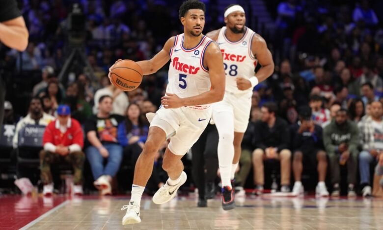 76ers pesados con Maxey, Jared McCain y el número 3 eligen un integral VJ EdgecombePero Grimes también puede jugar el pequeño frente si el entrenador principal Nick es una enfermera que quiere tres guardias en el campo.