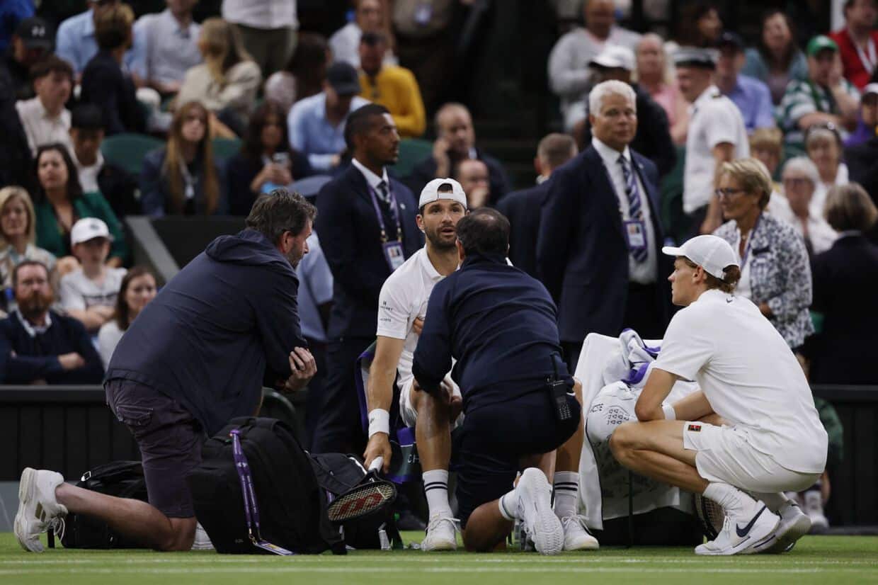 Gregor Dimitrov se retira de su partido contra Janic Sinner en Wimbledon.