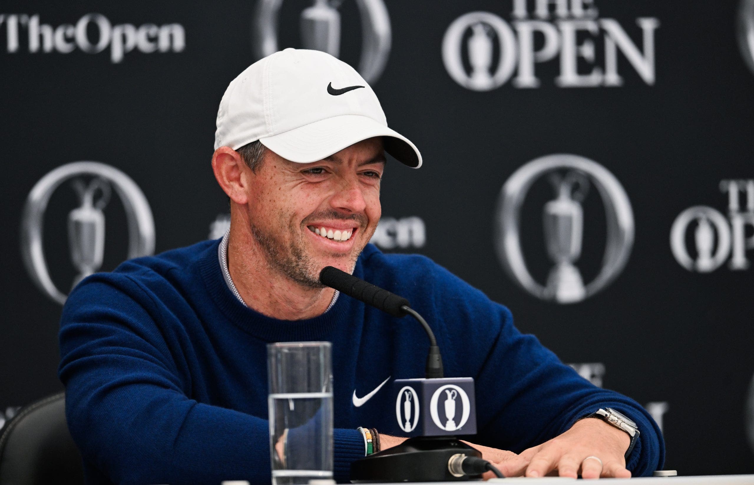 Durante una conferencia de prensa en Royal Portreth Golf Club antes del 153º Campeonato Abierto de Irlanda del Norte