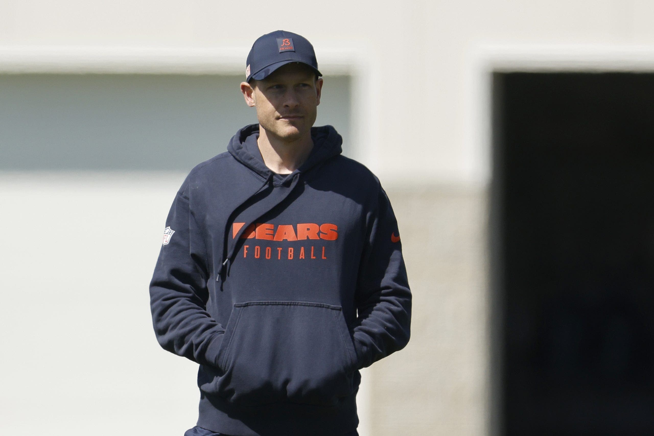 El entrenador en jefe de Pierce, Ben Johnson, ve a Ruki Minigampin en Halas Hall en el lago de Illinois el 09 de mayo de 2025. (Foto Michael Reeves/Getty Images)
