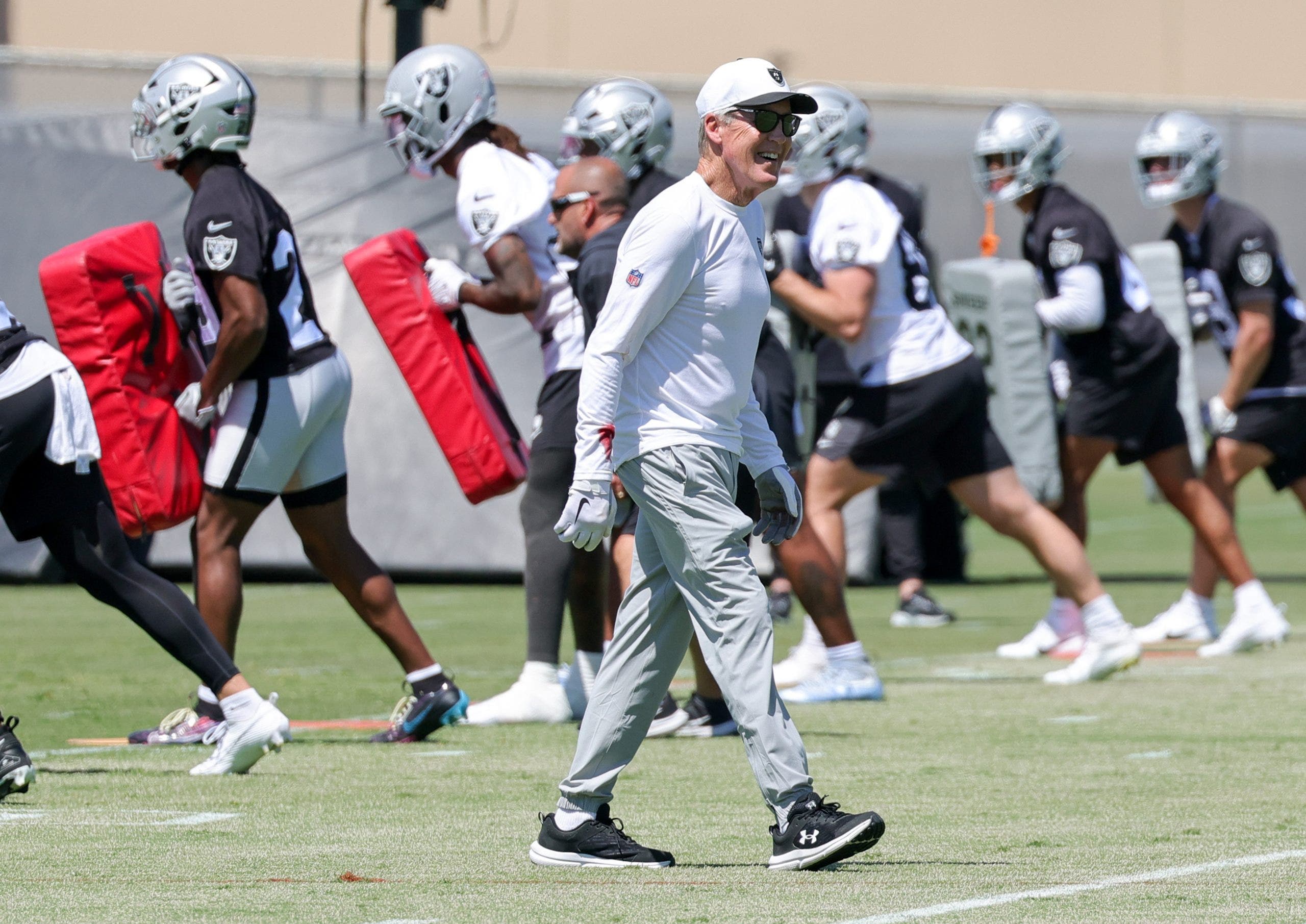 El 21 de mayo de 2025, el entrenador en jefe de los jinetes Beat Carol está caminando en un campo durante el entrenamiento de la oficina de OTA en los encabezados del Centro de rendimiento de la salud Henderson/Intermountan de Nevada. (Foto Eethan Miller/Getty Images)