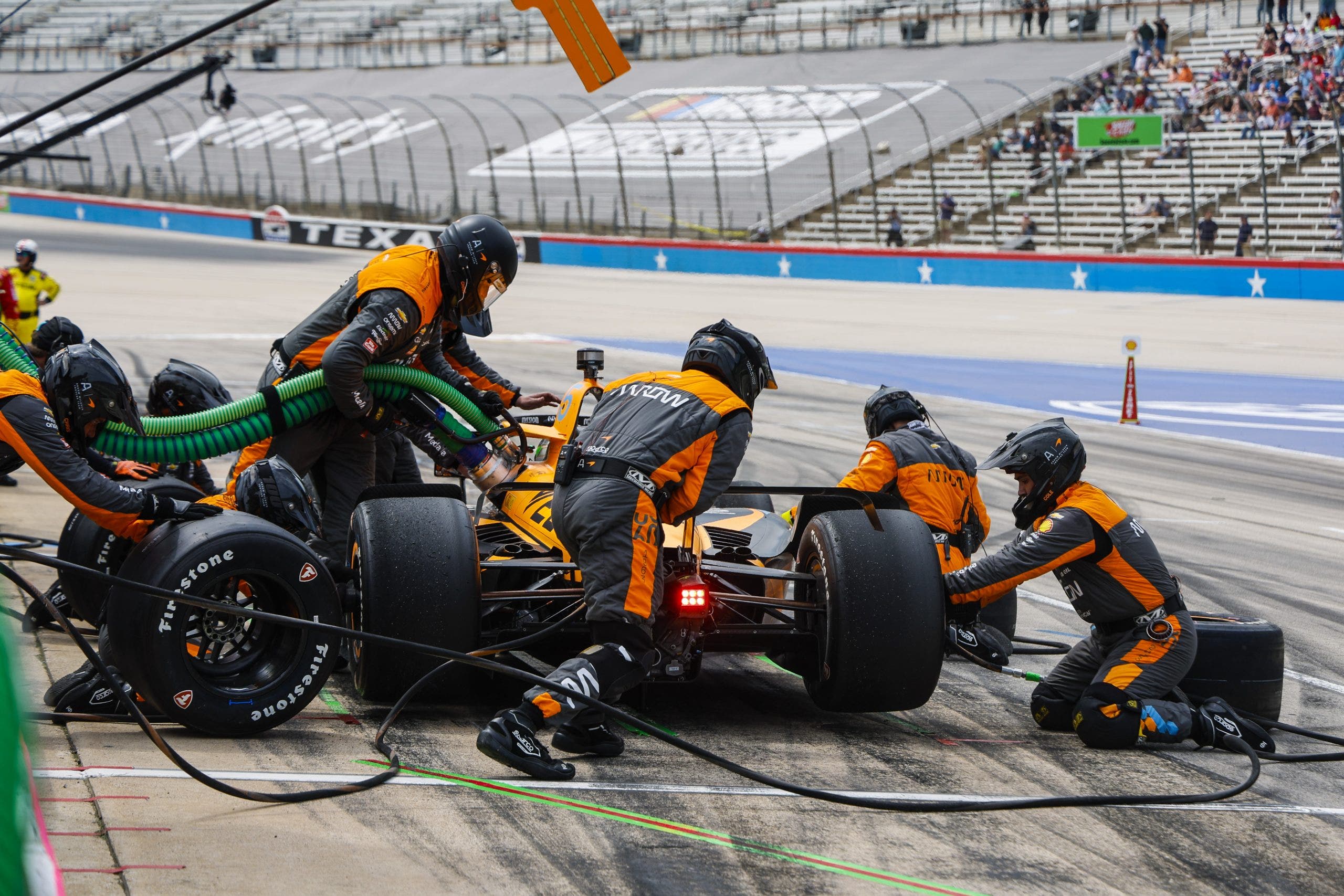 Pato o Ward se detiene para neumáticos y combustible en su pozo, NTT Indicar Series PPG 375 el 2 de abril de 2023 en Texas Motor Speedway
