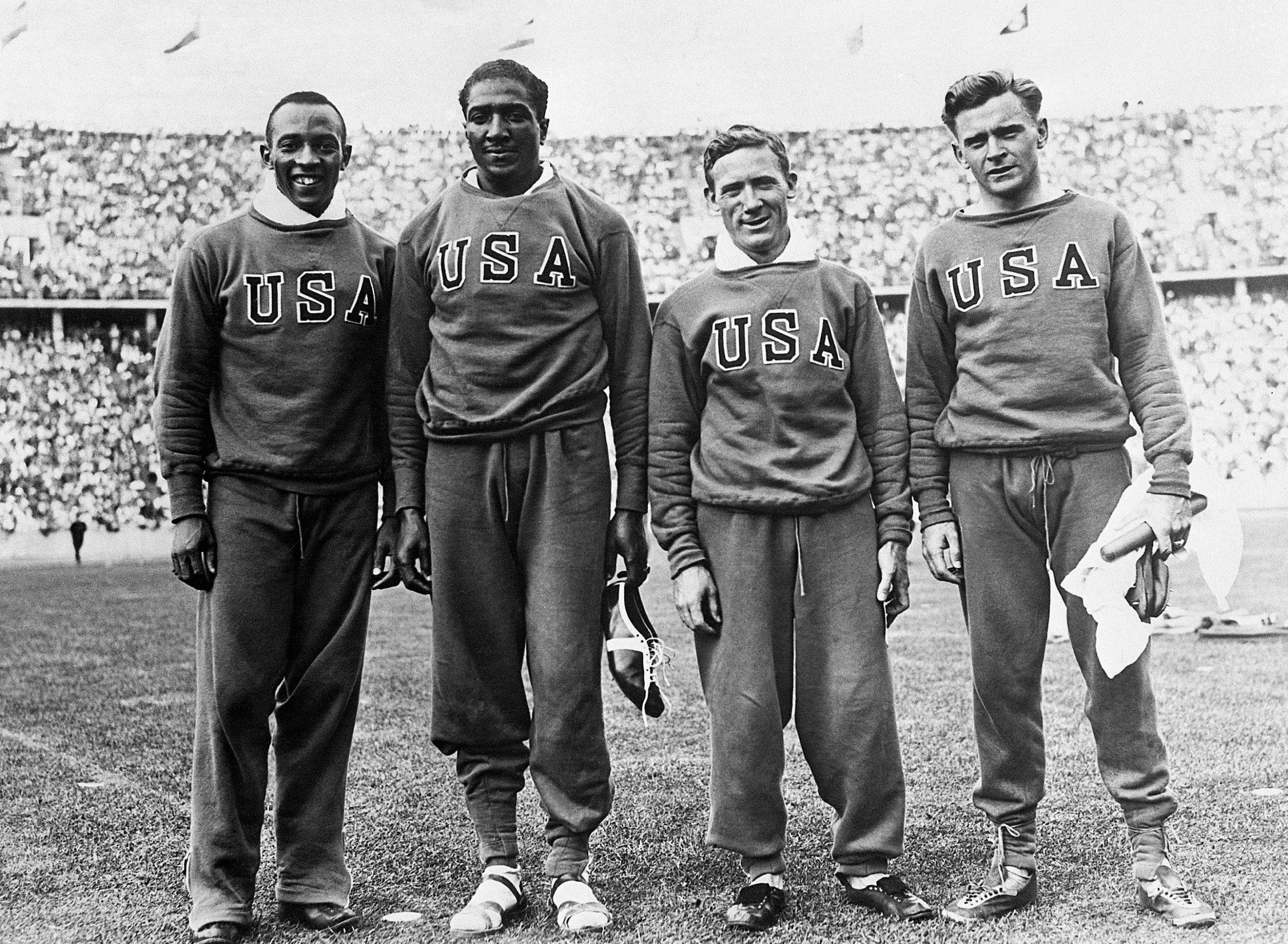 . Mejoraron el mundo y los registros olímpicos en 0: 39.8. De izquierda a derecha: Jesse Owenz, Ralph Medcoff, Foy Dropper y Frank Vioff.