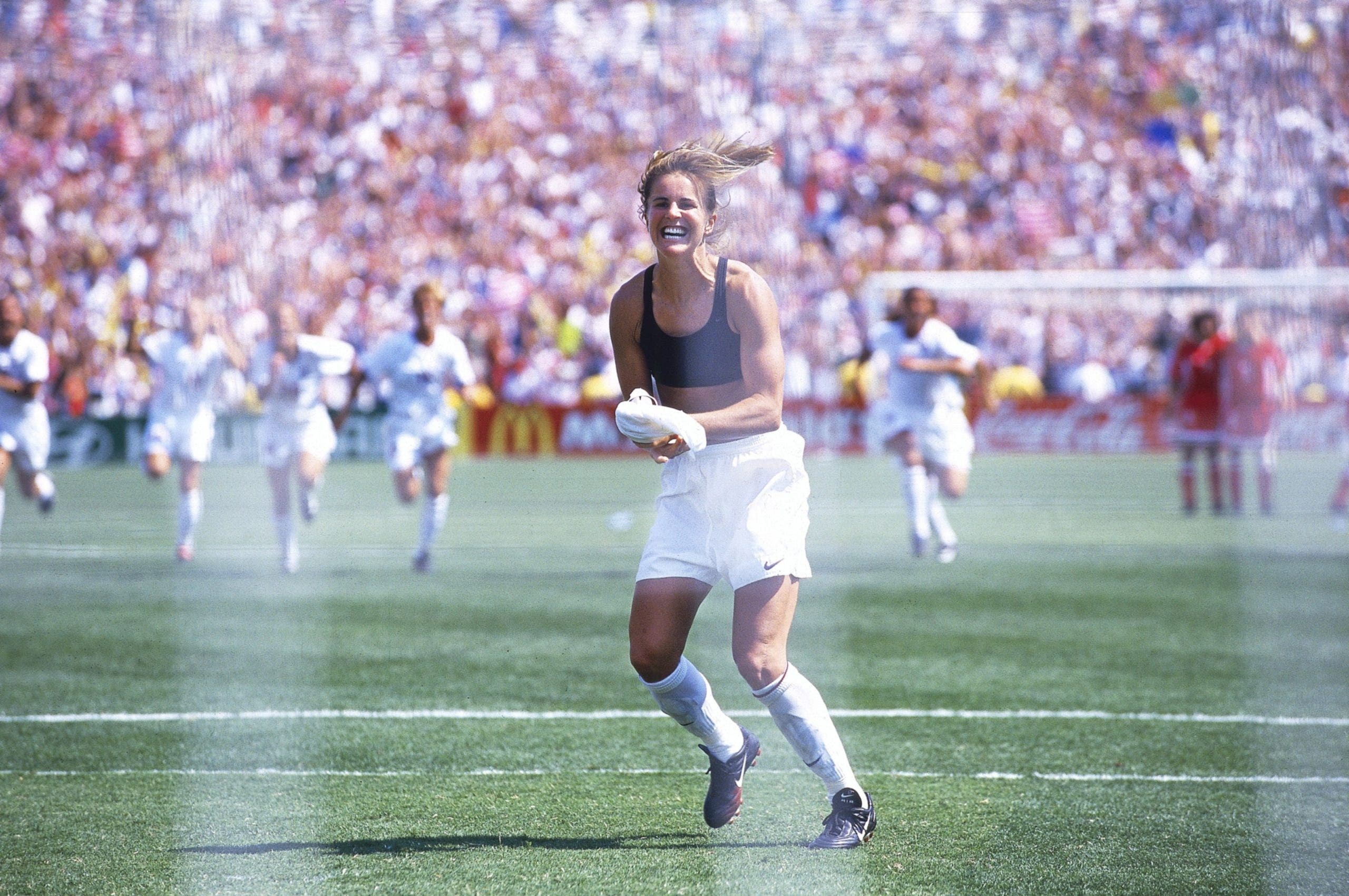 Fútbol: Final de la Copa Mundial: USA Brandy Sastein (6) ganó la celebración, contra el juego de penaltis jugado y China. Basadeena, CA 7/10/1999 Deuda: Robert Beck (Sported by Robert Beck/Sports por las imágenes Getty) (Número establecido: X58263 Tk4 R4 F15)