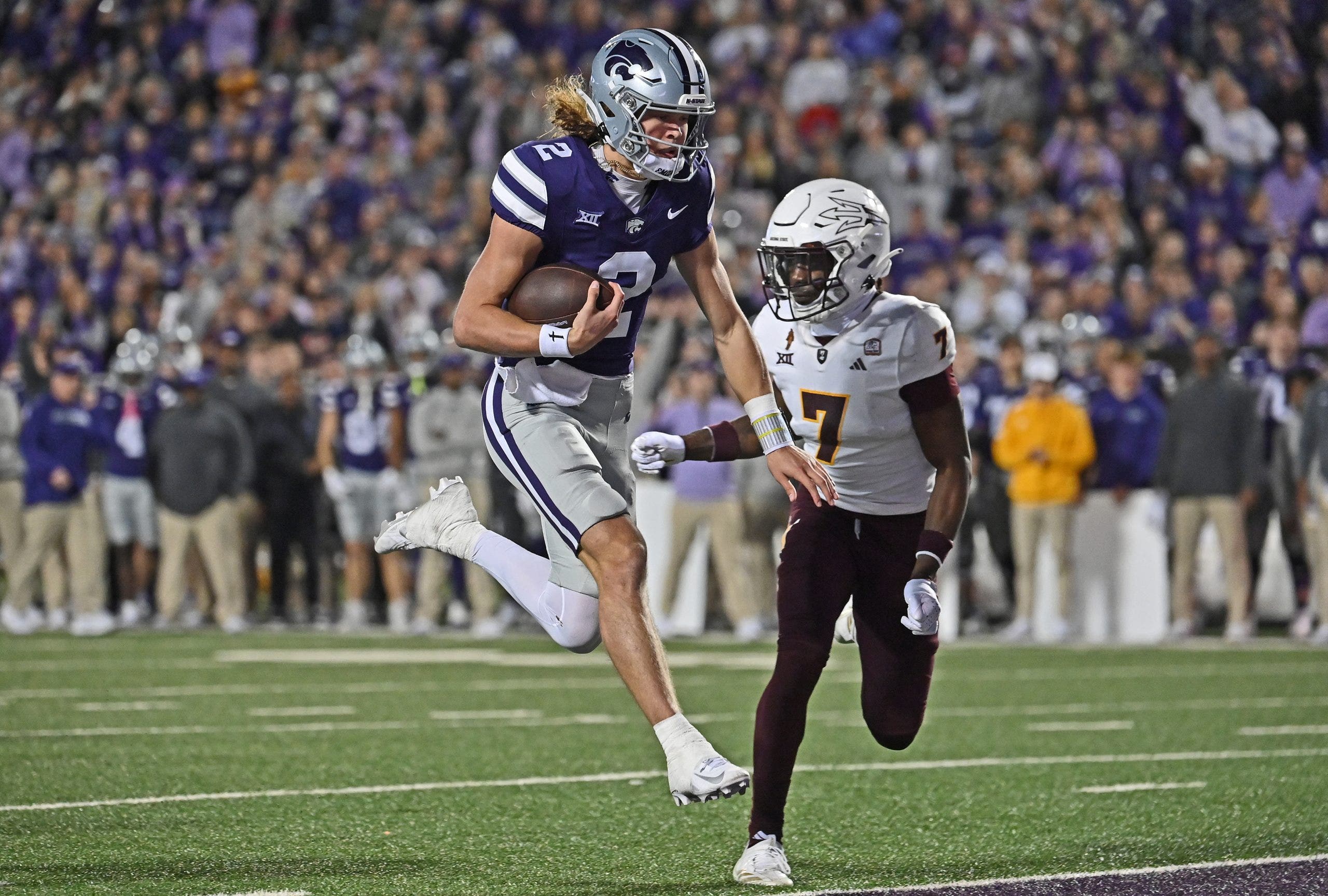 Kansas State Cube Avery Johnson tuvo 605 yardas rápidas y siete marcas rápidas para ir con 2,712 yardas aéreas, 25 Touch Town y 10 interrupciones para el mariscal de campo titular de Kansas. (Foto Peter Ikeen/Getty Images)