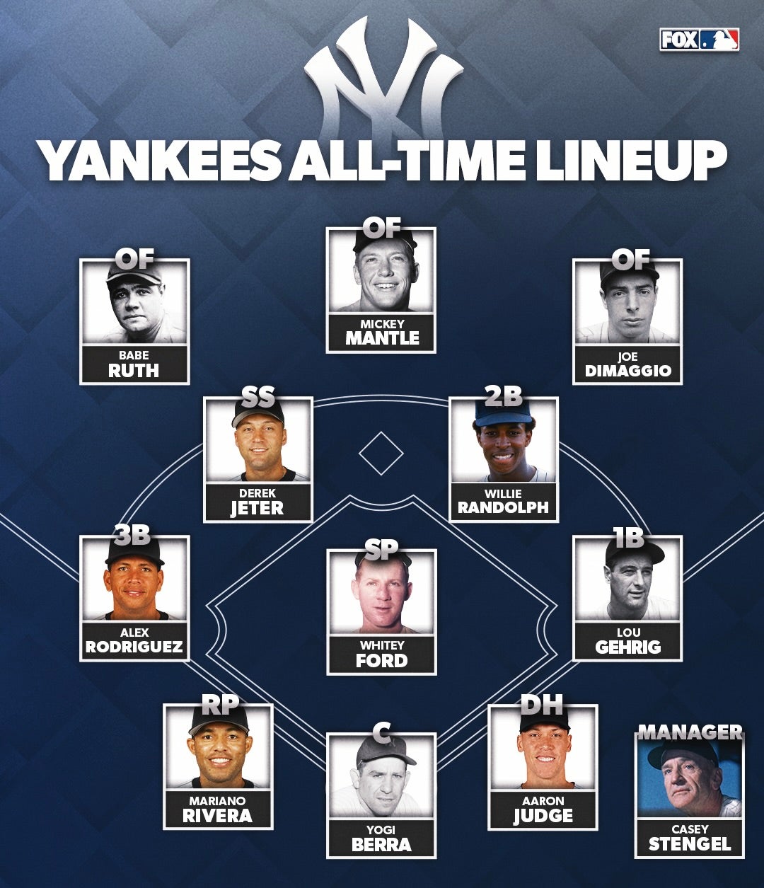 La lista de fuera de los boundas era muy profunda, y tuvimos que crear un MVP dos veces en su principal el Hiter. Juez es especial. El jardinero derecho de 6 pies -7 tiene una mano de élite, cubre una gran cantidad de tierra y ha sido el mejor ganador del juego en la última década. En 2022, el juez estableció un nuevo récord de una sola temporada de la Liga de EE. UU. Con 62 jonrones, luego envió 58 bolas sobre la pared en 2024. Ahora pasa por el «Capitán» y el juez tiene un gran poder desde el lado derecho, agradable, posición y pequeño swing. Es el mejor jugador del juego y ya es séptimo con 349 jonrones y 59.2 guerra en la historia de los Yankees.
