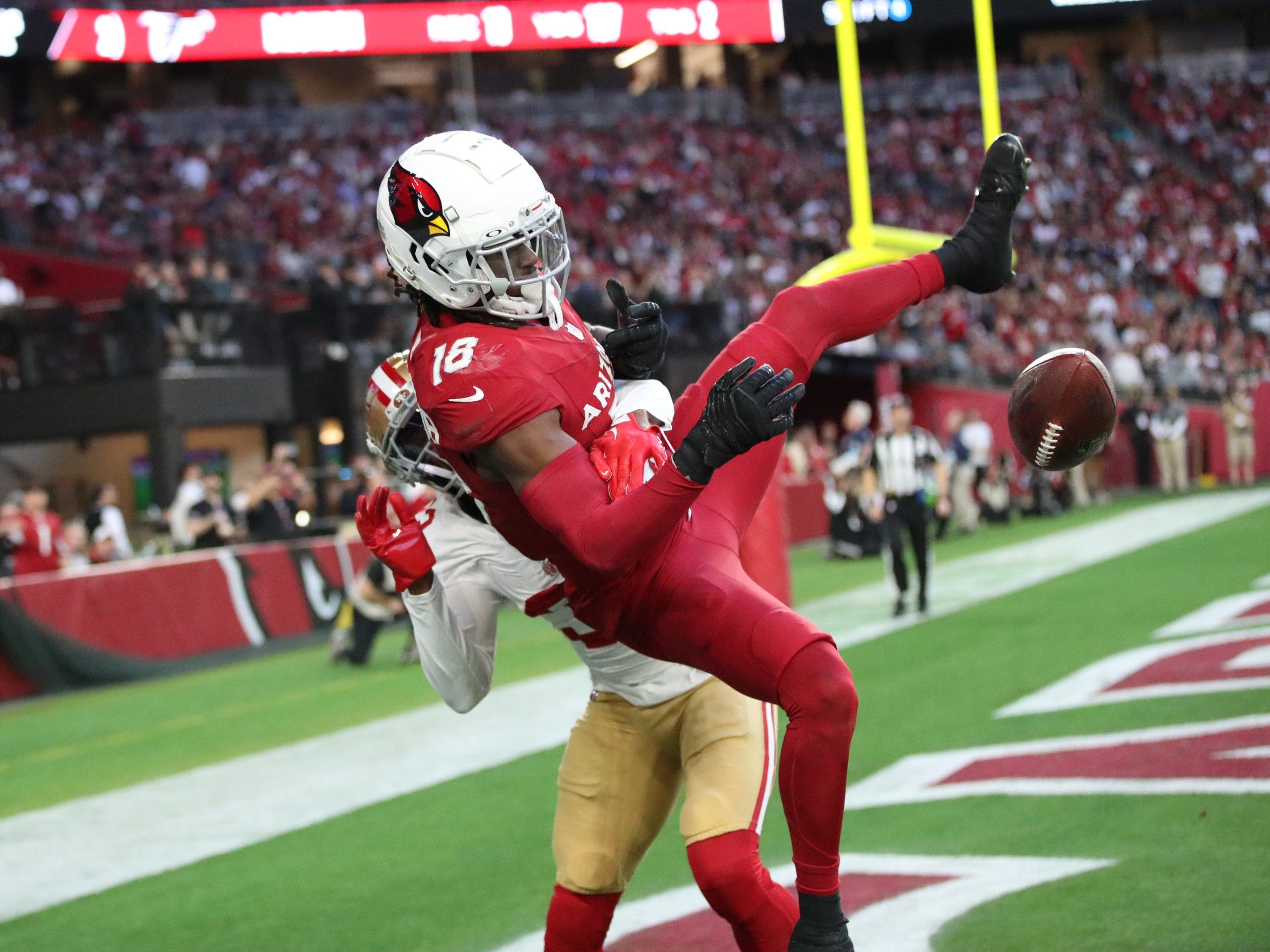 La forma en que Harrison se usó en el crimen de Arizona jugó un papel en esas figuras amenazantes. Según Next Zen Statistics, fue atacado 40 veces con 499 yardas (tasa de captura del 70%) y una ciudad de cuatro touchtown con cuatro ciudades de Tutch. En los caminos al aire libre, Harrison concluyó con 15 recepciones para 148 yardas de 26 objetivos, con dos touchdown e intercepción (57.7% C).