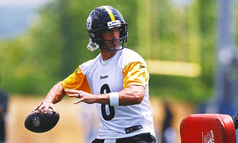 Aaron Rodgers La cáscara de la bomba cayó durante el primer día Pittsburgh Steelers‘Minikamp. Cuando se dirigía a los medios por primera vez después de firmar con el equipo, un periodista preguntó sobre el anillo en su dedo anular izquierdo.
