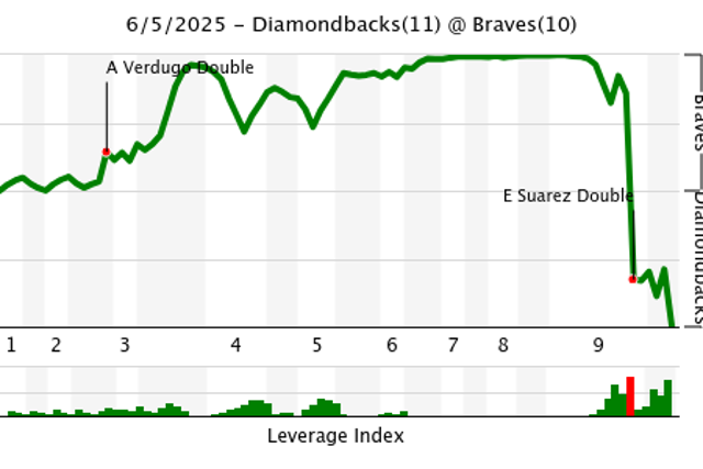 Loudes Gureal Jr. toca un jonrón solitario, que es 10-5 Atlanta y lleva la probabilidad de Arizona al 0.2%. Oye, se duplica, es algo. Un grupo de risas Luego dibuja una caminata y alcanza un segundo lugar en la apatía defensiva: ¿Cuál es el punto de tratar de detenerlo, en el noveno lugar 10-5?