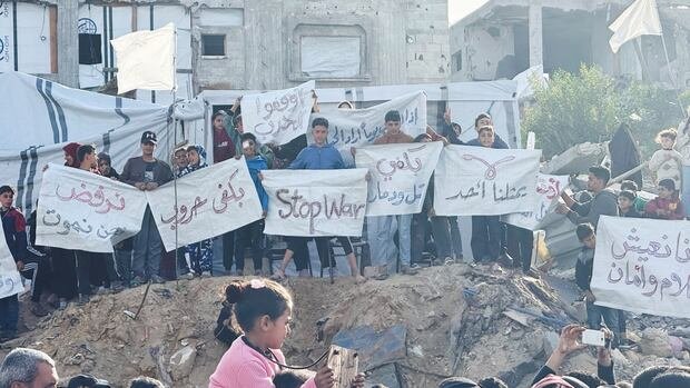 «Toda Gaza estaba en ruinas y ahora la agresión nos ha ordenado que abandonemos el norte. ¿A dónde ir?» El testigo dijo en las protestas.