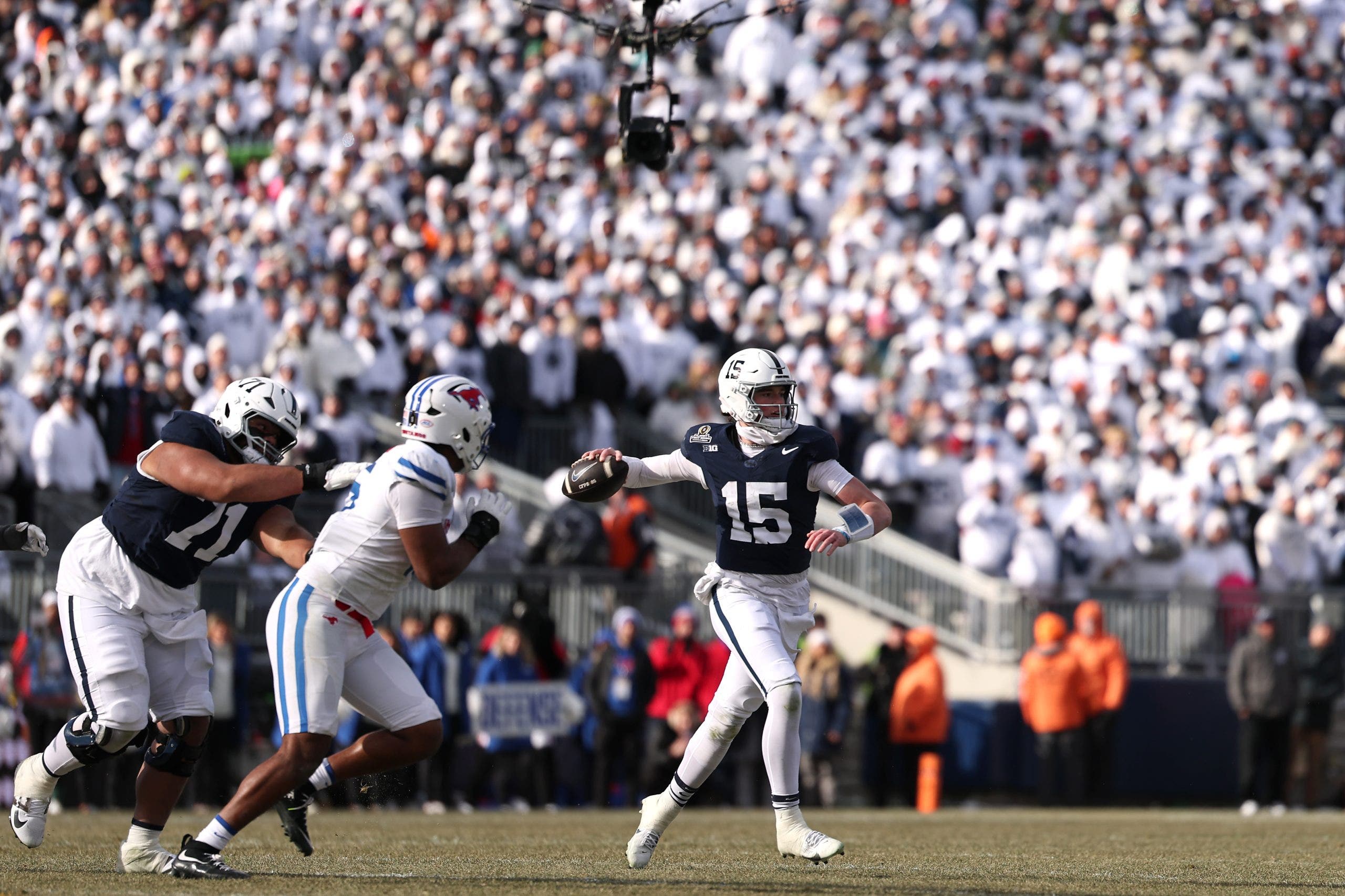 Drew Allar está entrando en su tercera temporada como mariscal de campo titular del estado de la pluma. (Foto Scott Tatssh/Getty Images)