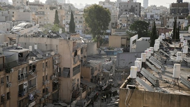 Funcionarios de la ciudad central israelí de Peta Tikwa dijeron que los misiles de Irán habían tocado un edificio residencial allí, cargando paredes de concreto, cortando ventanas y dividido las paredes de múltiples apartamentos.