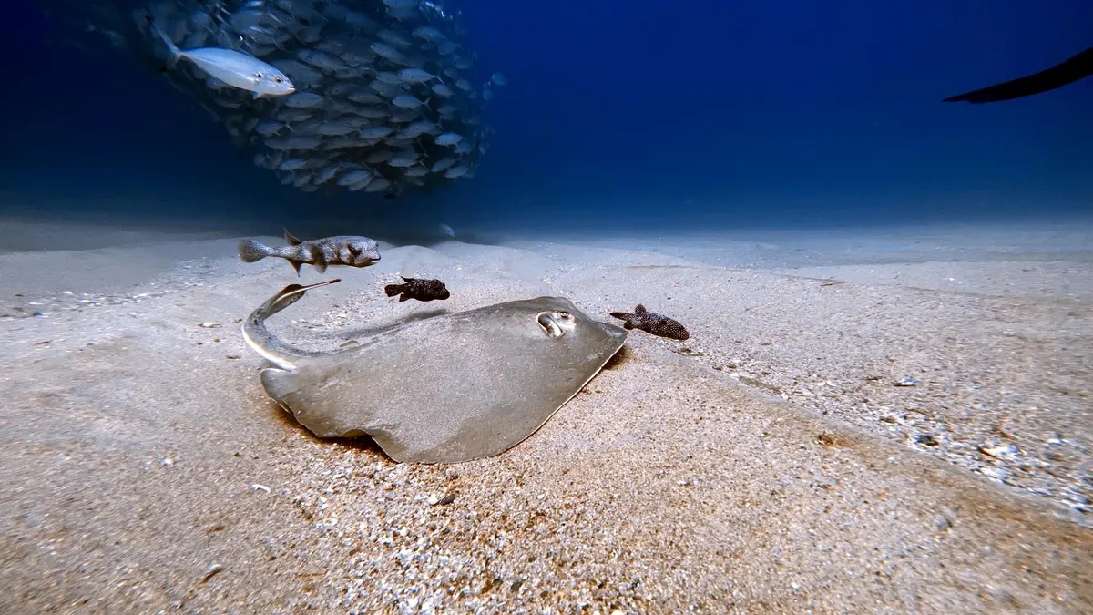 Este pez puede vivir más de una década, más allá de dos metros, inofensivo para los humanos. Su cuerpo recuerda una línea, pero con una cola de tiburón. Vive en fondos de arena que se alimentan de peces pequeños, moluscos y crustáceos.