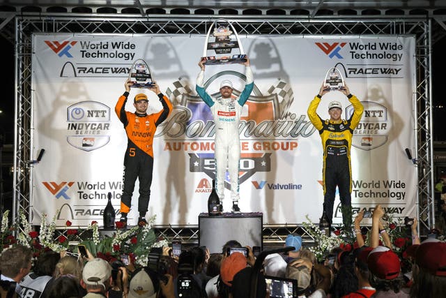 Después de la carrera de indicar en St. Louis, la flecha celebra el podio de McLaren’s Pato superado (izquierda)