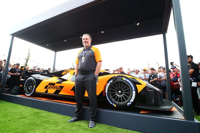 El CEO de McLaren Racing, Jack Brown, posó en 2027 con el nuevo HyperCar de McLaren United, en el Circuito de la Sarte 24 horas antes de Le Mans