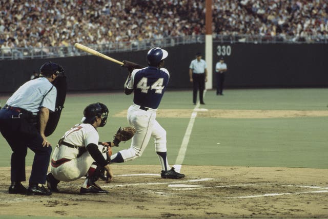 Henry Aaron es segundo en la historia de MLB con 755 jonrones de carrera. (Foto de UPI Color/Betman Archive/Getty Images)