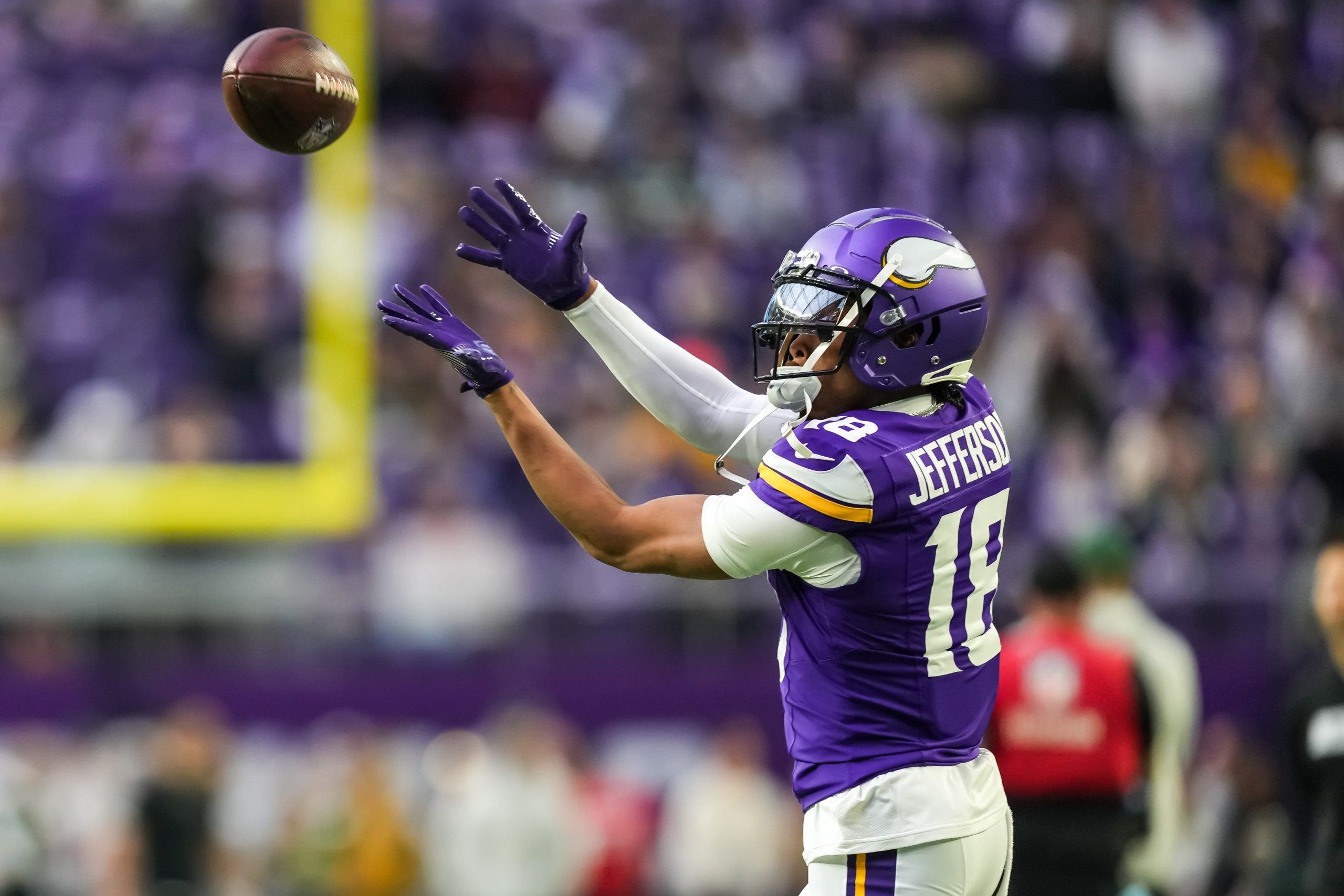 Jefferson es el mejor receptor que ofrece el juego. Es terrible en el espacio, que regresa a la secundaria, como los negocios y produce estable. Jefferson dos veces All-Pro y cuatro veces Pro Bowler, Jefferson tuvo 103 recepciones para 1,533 yardas y 10 touchdowns la temporada pasada. Jefferson, el jugador ofensivo de 2022 de la NFL, terminó octavo en el deporte de más de 1,000 en sus cinco temporadas en sus cinco temporadas y octavo en los receptores abiertos, 87.2 Grado total, PFF la temporada pasada. Es difícil estimar su producto la próxima temporada, sin embargo, los vikingos están cambiando con Cubie JJ McCartiFueron negociados en 2024 para elegir en la selección número 10 Borrador de la NFL.