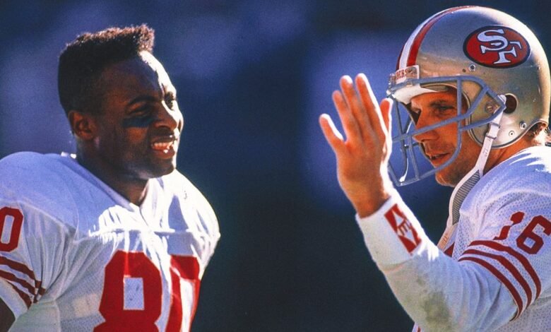 Jerry Rice huyó de la competencia como lo hizo contra los Chargers en el Super Bowl XXIX. .