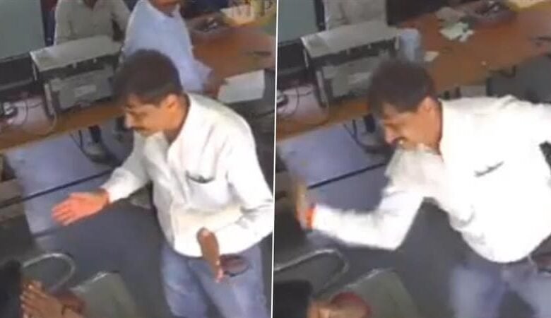 Bhaind (MP) Coleccionista Sanjeev Srivastava Video viral: Un video impactante del distrito Bhaind de Madhya Pradesh se ha vuelto viral en las redes sociales, en el que un estudiante es sacrificado repetidamente en el magistrado del distrito Sanjeev Srivastava. El incidente tuvo lugar el 1 de abril, y el segundo año de BSC se llevará a cabo en el Dendayal Dangraia College. El coleccionista Sanjeev Srivastava se puede ver en el video cuando un estudiante se retira de su silla y lo saca de la bofetada. Después de esto, lo llevó a una habitación donde se le entregó el papel a otra persona, mostrando al estudiante y luego golpeó nuevamente.