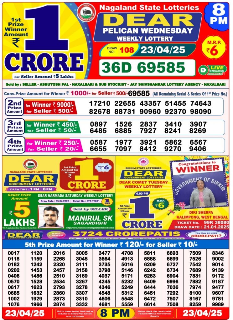 Lotería Sambad 23 de abril Resultados: Si compra un boleto para el sorteo semanal de la lotería estatal de Nagaland, puede demostrar que hoy es muy especial. El primer premio de esta lotería del gobierno de Nagaland es Rs. Si también espera estos resultados de lotería, ¡aprenda cómo puede conocer las estrellas de su buena suerte!