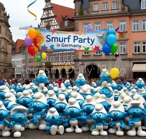 El incidente fue llevado a cabo por el grupo juvenil local, con el objetivo de difundir la atmósfera de diversión y celebración, la pequeña ciudad se convirtió en una verdadera «aldea de Smergar», entre las enormes decoraciones azules y la música animada del mundo inspirador. Los participantes usan ropa azul y gorras de olfateo blanco, cumplen todas las condiciones de Guinness, requieren ropa completa y combinación con el personaje original.