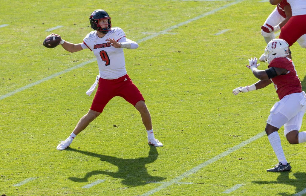 Tres años más tarde en Oregon y Texas Tech, Shaf floreció en Louisville el año pasado, lanzando un crimen de estilo profesional para 23 touchdowns. (Foto David Madison/Getty Images)