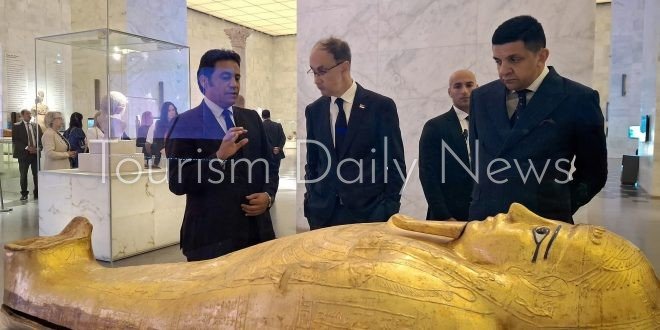 En el Museo Nacional de Civilización Egipcia, el CEO del Museo fue adoptado por el CEO Dr. Taieb Abbas, donde les dio la bienvenida y les dio una participación evitada sobre su civilización cultural y social y su civilización cultural y social. Oferta central, momias de Egipto.