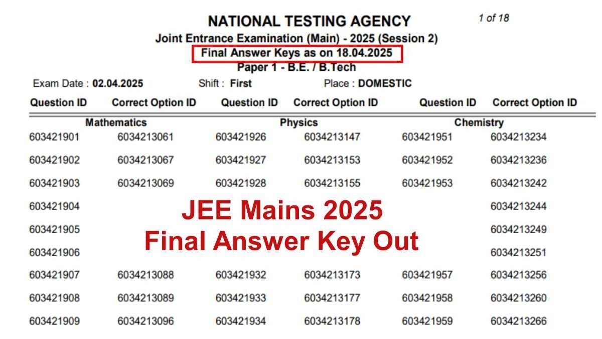 Zee Mains 2025 revisó la llave final de Anser: Ji Mains lanzó la última sesión de respuesta de abril, ¡ahora se ha realizado este cambio! – Jee Mains 2025 Clave de respuesta final revisada