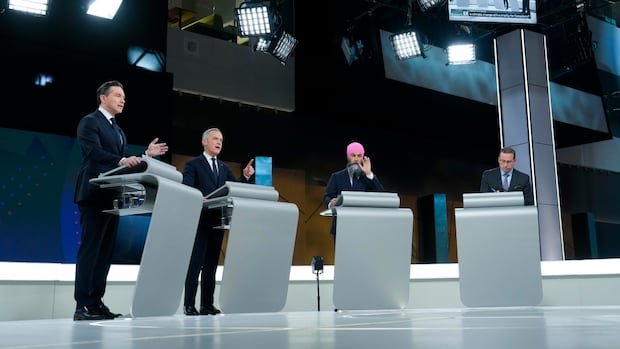Al final del debate en inglés en Montreal el jueves por la noche, el líder del NDP Jagmit Singh, el líder liberal Mark Carney, el líder de Cubocois negro Yives-Francois Blanchet y el líder conservador Pierre Powries recibirán su mensaje menos de dos semanas antes de las elecciones.