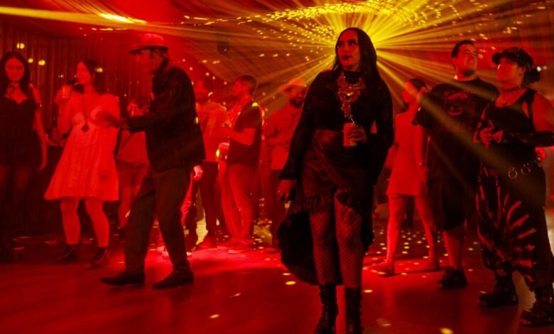 Los clientes bailan por música de artistas locales en el desierto de la noche gótica en Mojave Gold.