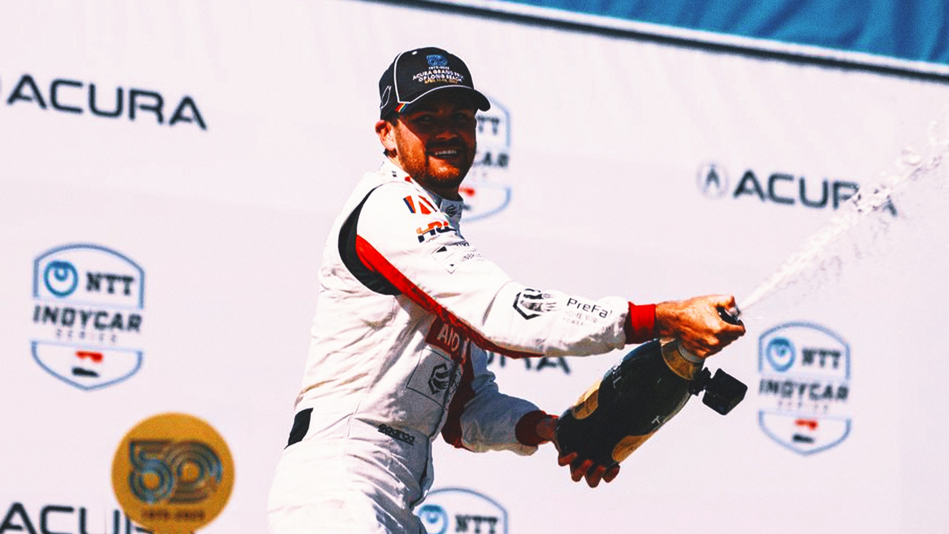 Kyle Kirkwood celebra Long Beach después de ganar el Gran Premio.