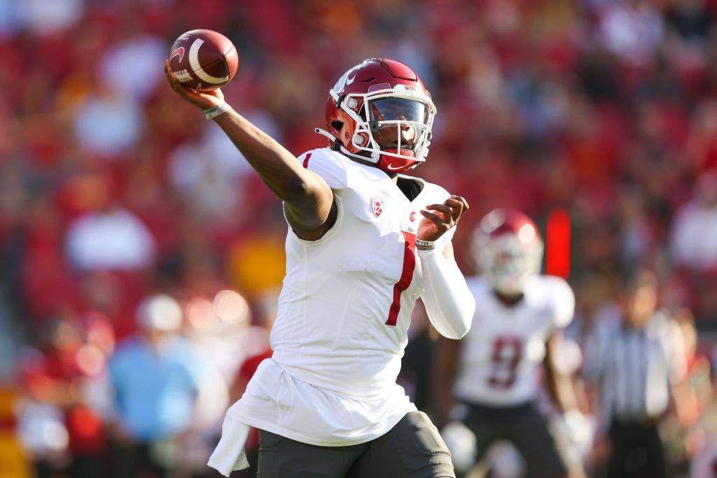 En dos temporadas en el estado de Washington, el barrio lo lanzó para aproximadamente 7,000 yardas y 48 touchdowns. (Jordan Kelly/Icon Sports Spire Photo de Getty Images)