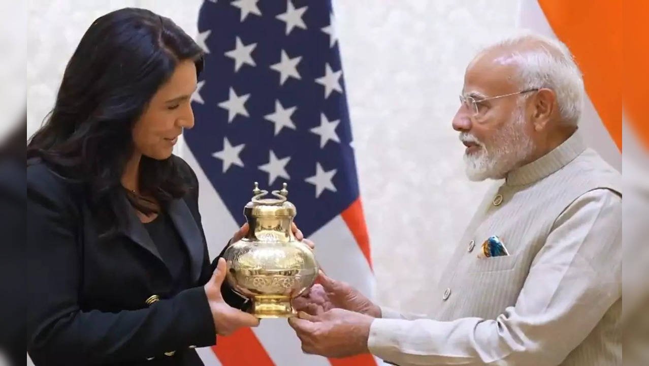 El primer ministro Modi Tulsi Gabbard ‘Holy Water of Mahakumbh’ le dio al jefe de inteligencia estadounidense ‘Tulsi Mala’-Video