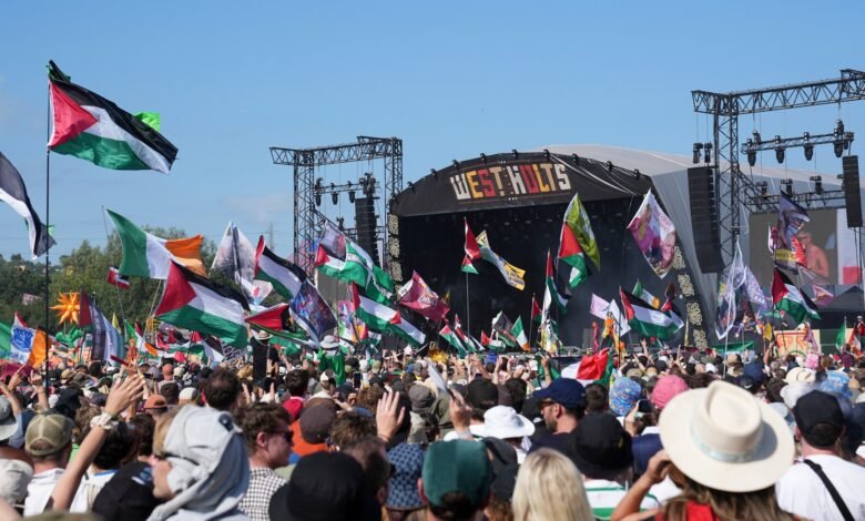 El equipo también estaba ansioso por saludar a un grupo «Bob Villan» Británico para su último puesto en el Festival de Glastonbury la semana pasada, cuando el equipo lanzó un canto que dice: «Muerte, muerte para el ejército israelí».