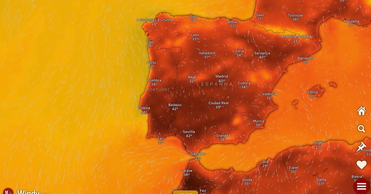 Siete distritos continentales de Portugal están en la advertencia roja, este domingo, a partir de las 09:00, debido al calor extremo.