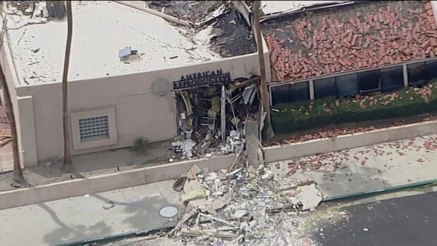 Las imágenes aéreas mostraron un automóvil en llamas en un estacionamiento detrás del edificio donde se encontraba la clínica de reproducción. La explosión se encuentra en el techo del edificio y explotó el campo de las ruinas anchas y cuatro carriles de la calle al otro lado de la estructura.