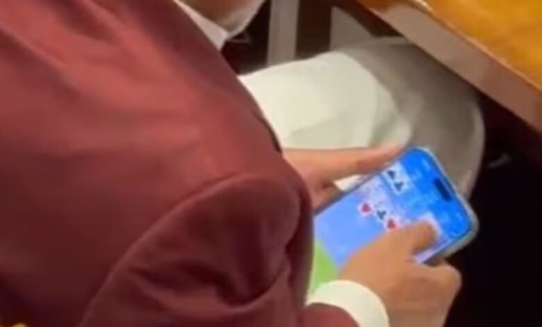 «Cuando la discusión se lleva a cabo en casa, el Ministro está jugando al Rummy en Mobile. Esto es una pena. Debería renunciar de inmediato. Si no lo da, el Ministro Principal debe eliminarlo».