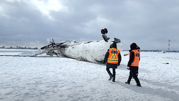 Puede ver la facturación del fuselaje de humo oscuro después del accidente de la tarde. Las publicaciones en las redes sociales mostraron que los pasajeros colgaban boca abajo después de que el jet se volteó y se detuvo en la pista helada.