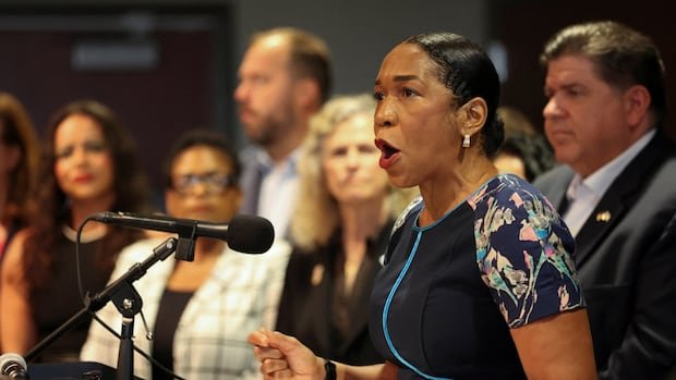 «Cuando las personas aprenden por qué estamos haciendo esto, también están enojados porque nuestro gobernador puede doblarse al presidente de los Estados Unidos», dijo Goodwin en Illinois. Cuando pasa Anfitrión invitada Rebecca Zandberergen.