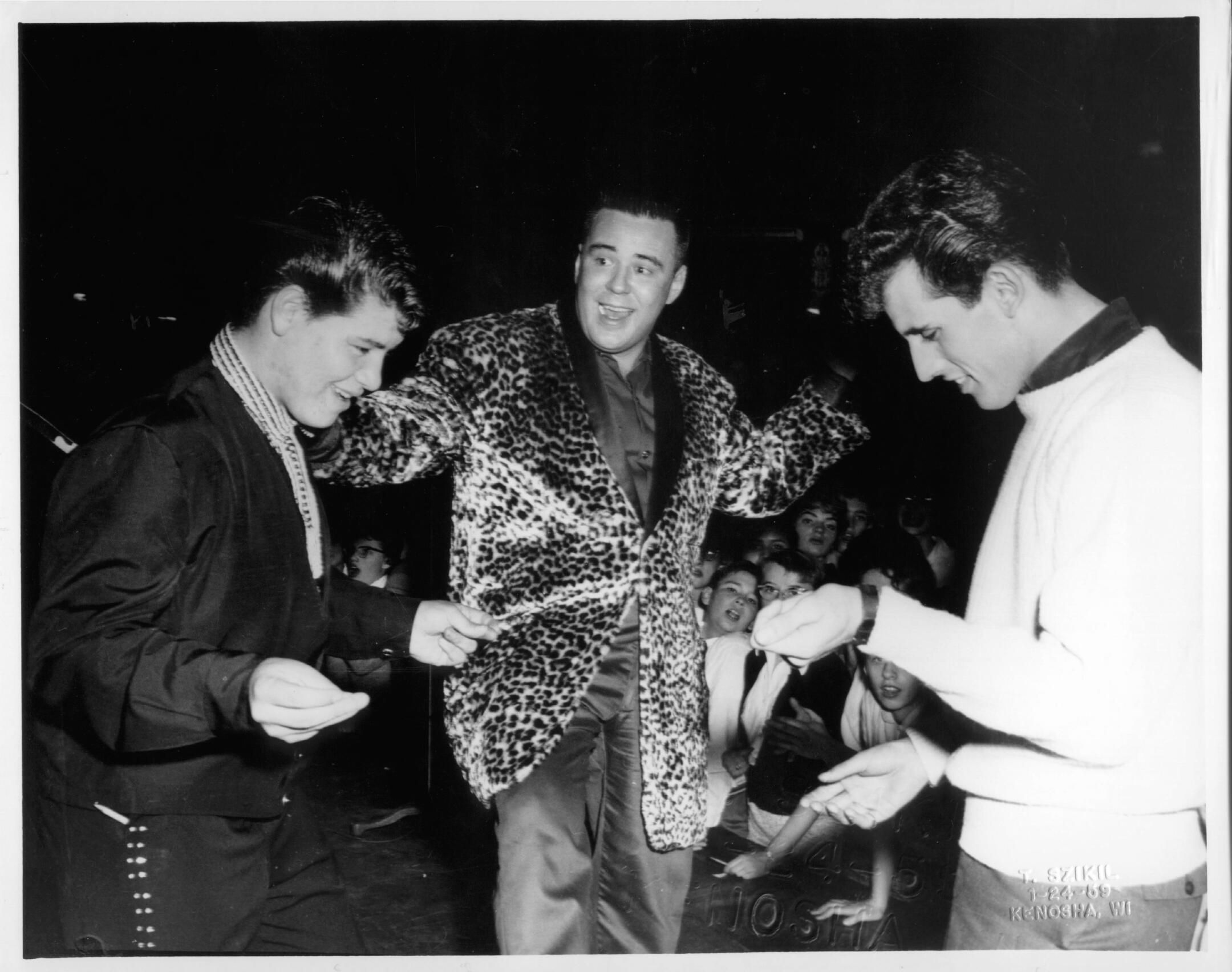 Fastón sincero de Ritchie Valens, Big Bopper (JP Richardson) y Buddy Holly durante la gira de fiesta de baile de invierno.