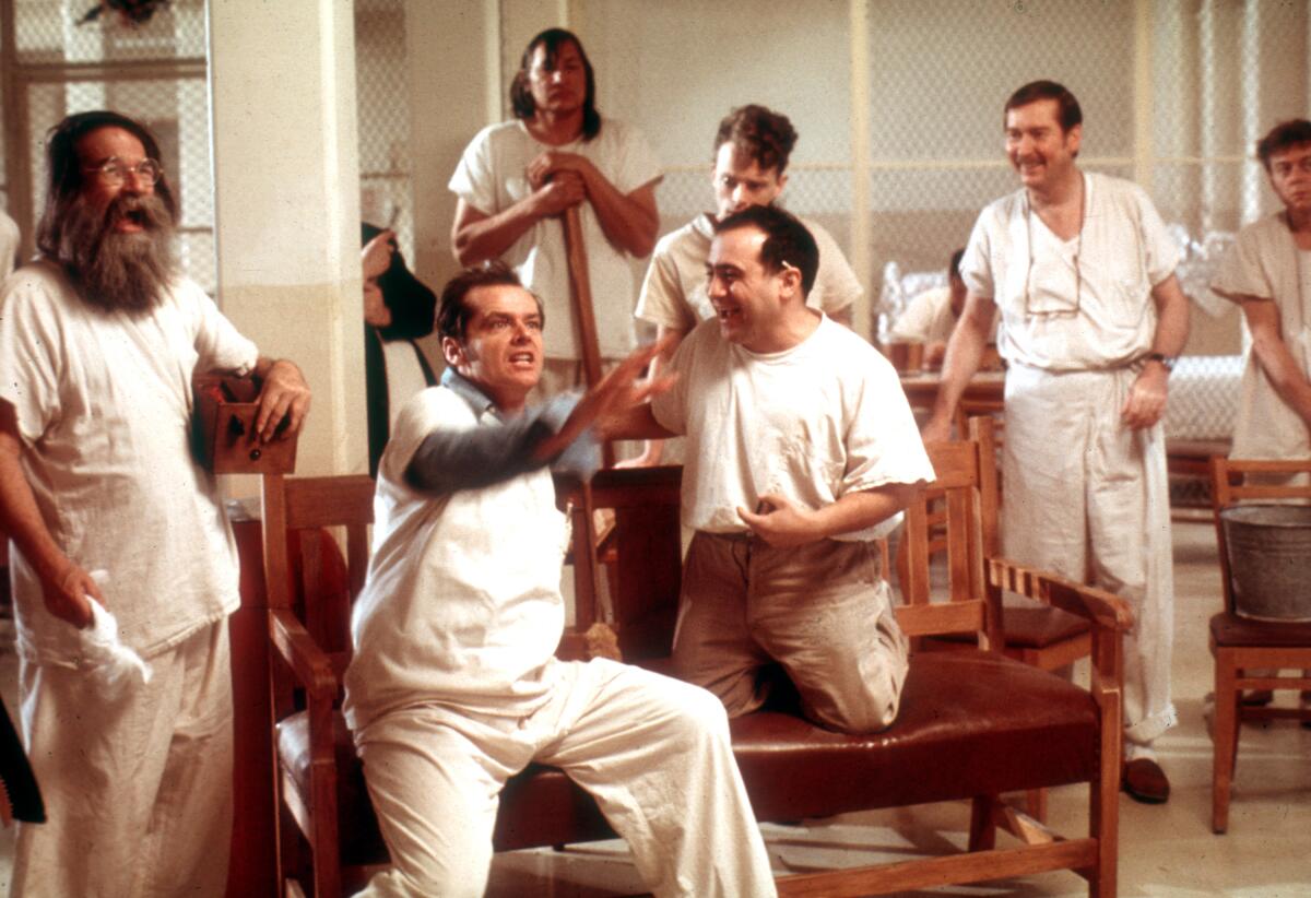 Jack Nicholson, medio, en 1975 «Uno voló sobre el nido del cuco».