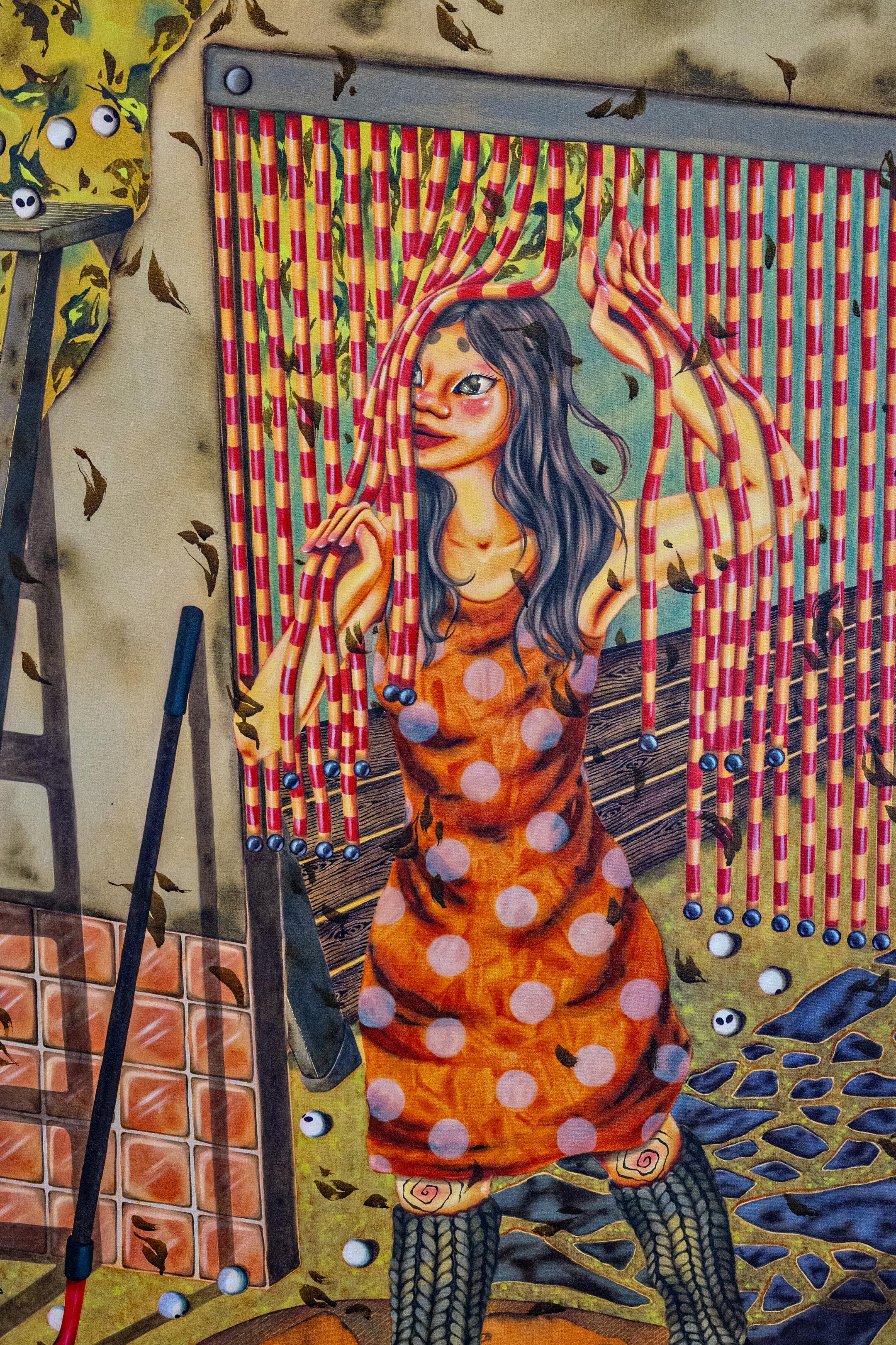 Obviamente, estas pinturas se movían mucho, pero aún extrañamente. Hace algún tiempo, encontré esto en el teatro Kabuki llamado Fideos. En ese momento, en el drama, este actor atacó esta pose muy dramática. Esta es una herramienta utilizada por el actor para atraer la atención de los espectadores a momentos importantes. Esta es una pose muy dramática con una expresión facial muy dramática, pero realizada con silencio. Cuando encontré este concepto, sabía que esa era mi pintura. Quiero que mi figura sea una midjump, pero aún así. Dentro de la parada, existe toda esta información. Eso es lo que dejó de hacer mucho tiempo. Una vez que se detenga y piense (es) cuando puede describir todo. Mi pintura vino de cuando se detuvo, donde había un movimiento.