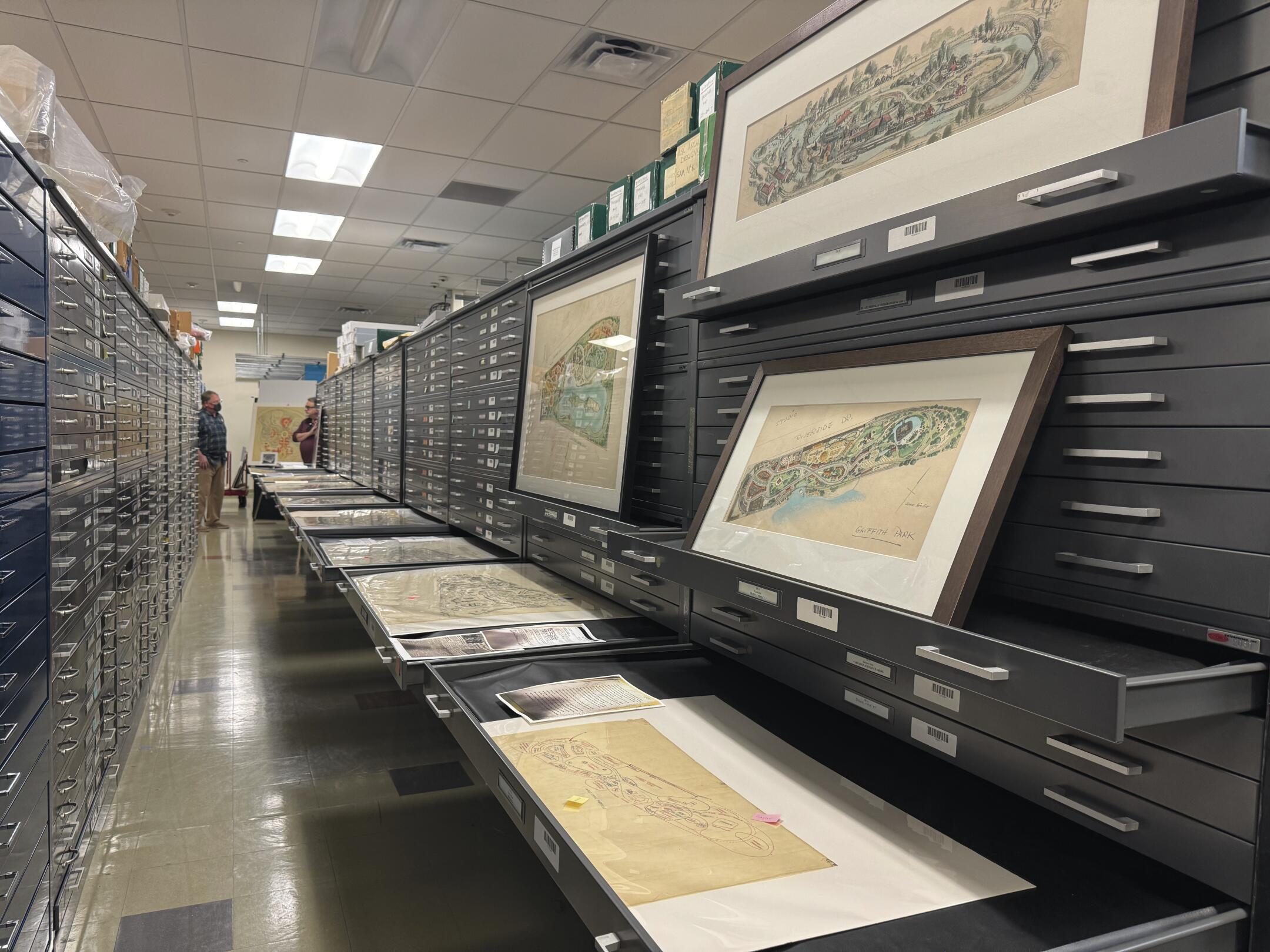 Archivos en Walt Disney Imagineering, la división secreta de la compañía responsable de la experiencia del parque temático. En el archivo se encuentran varios mapas de Marvin Davis, que exploró las raíces de Disneyland.